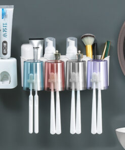 GIÁ TREO BÀN CHẢI DÁN TƯỜNG KÈM CỐC TRONG SUỐT